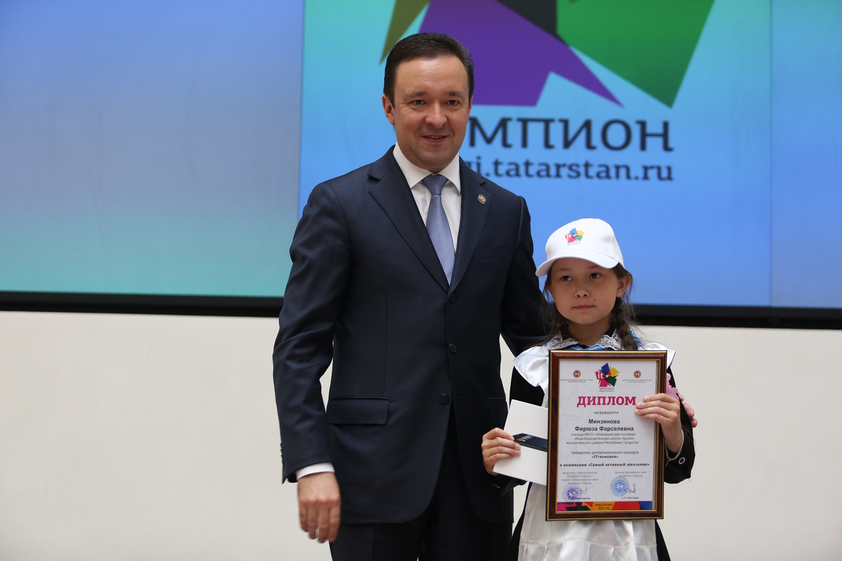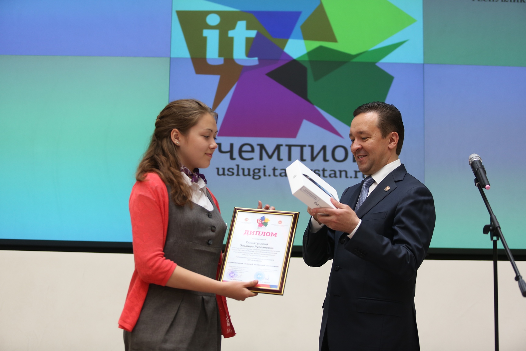 The contest was organized by Tatarstan Ministry of Information and Communication and Ministry of Education and Science. 153 IT champions received iPads. Tatarstan Prime Minister Ildar Khalikov presented iPads to 10 most active pupils and congratulated everyone on International Children’s Day.