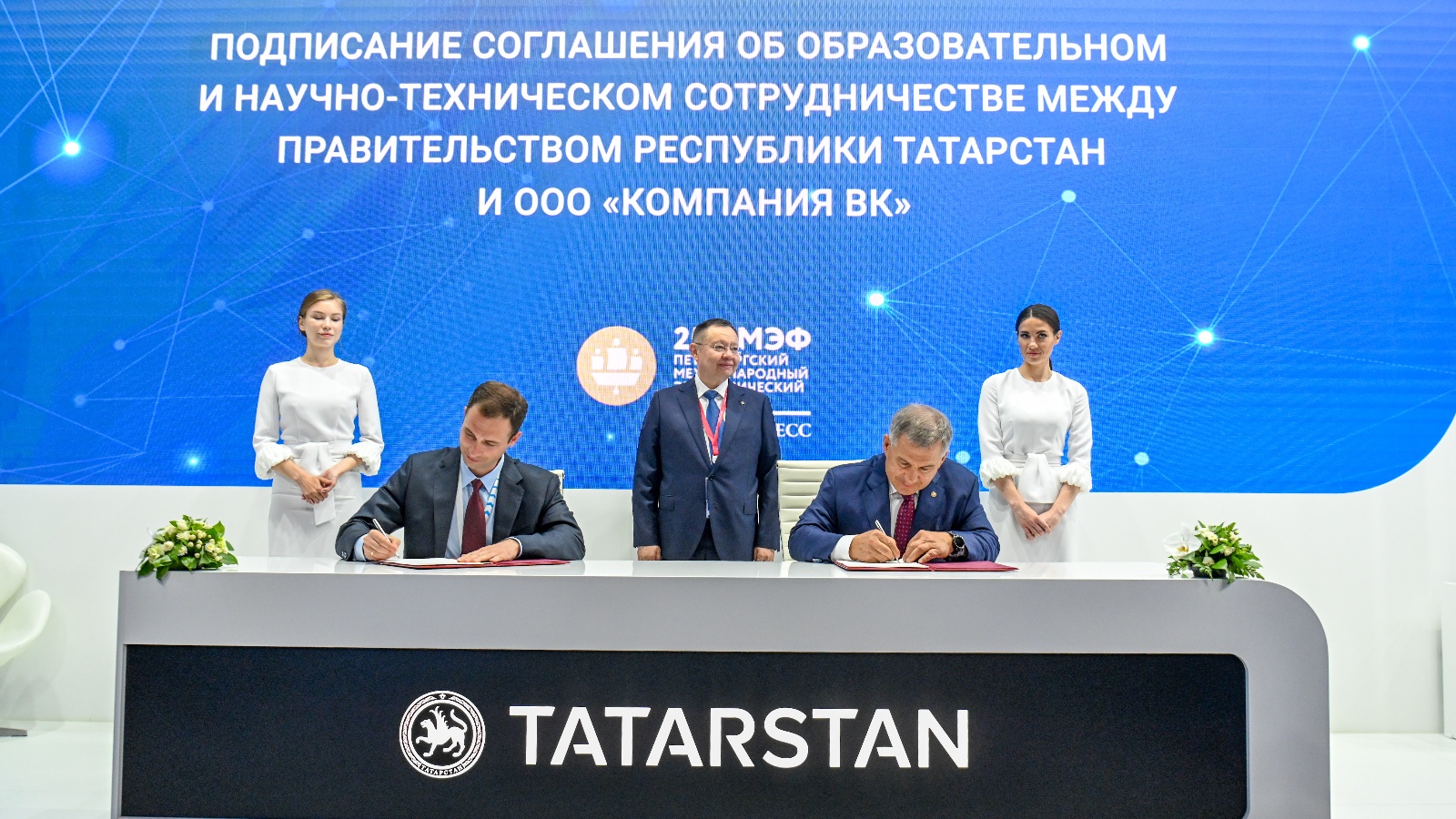 On June 16, on the sidelines of St. Petersburg International Economic Forum, Tatarstan President Rustam Minnikhanov and Director General of VK Company Vladimir Kirienko signed an Agreement on educational, scientific and technical cooperation between Tatarstan and VK Company.