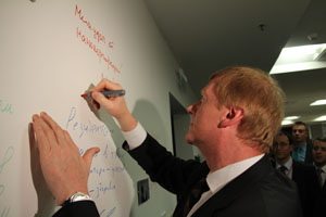 Знакомство главы «РОСНАНО» с ИТ-парком началось с просмотра ролика-презентации – визитной карточки казанского технопарка, и посещения Дата-центра. В Бизнес-инкубаторе Анатолий Чубайс ознакомился со стартапами «Эффективно.рф» и «Автодория», поинтересовался есть ли уже заказы на инновационные разработки начинающих ИТ-предпринимателей и пожелал удачи в реализации проектов.