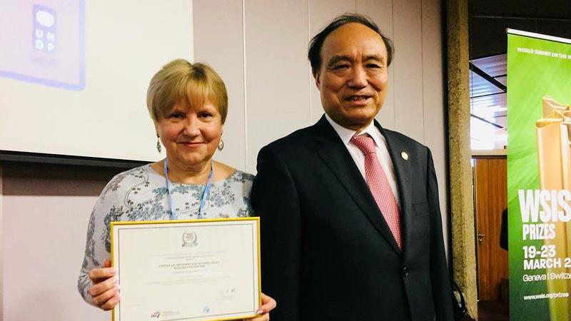 Генеральный секретарь Международного союза электросвязи (ITU) – специализированного учреждения ООН в области информационно-коммуникационных технологий – г-н Хоулинь Чжао вручил диплом исполнительному директору Центра информационных технологий РТ Татьяне Камалетдиновой.