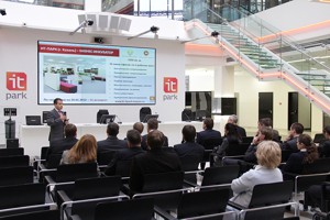 В Бизнес-инкубаторе ИТ-парка проекты-резиденты «Автодория» и «АльфаМед» смогли представить разработки своих стартапов, а также обменяться контактами с представителями делегации.