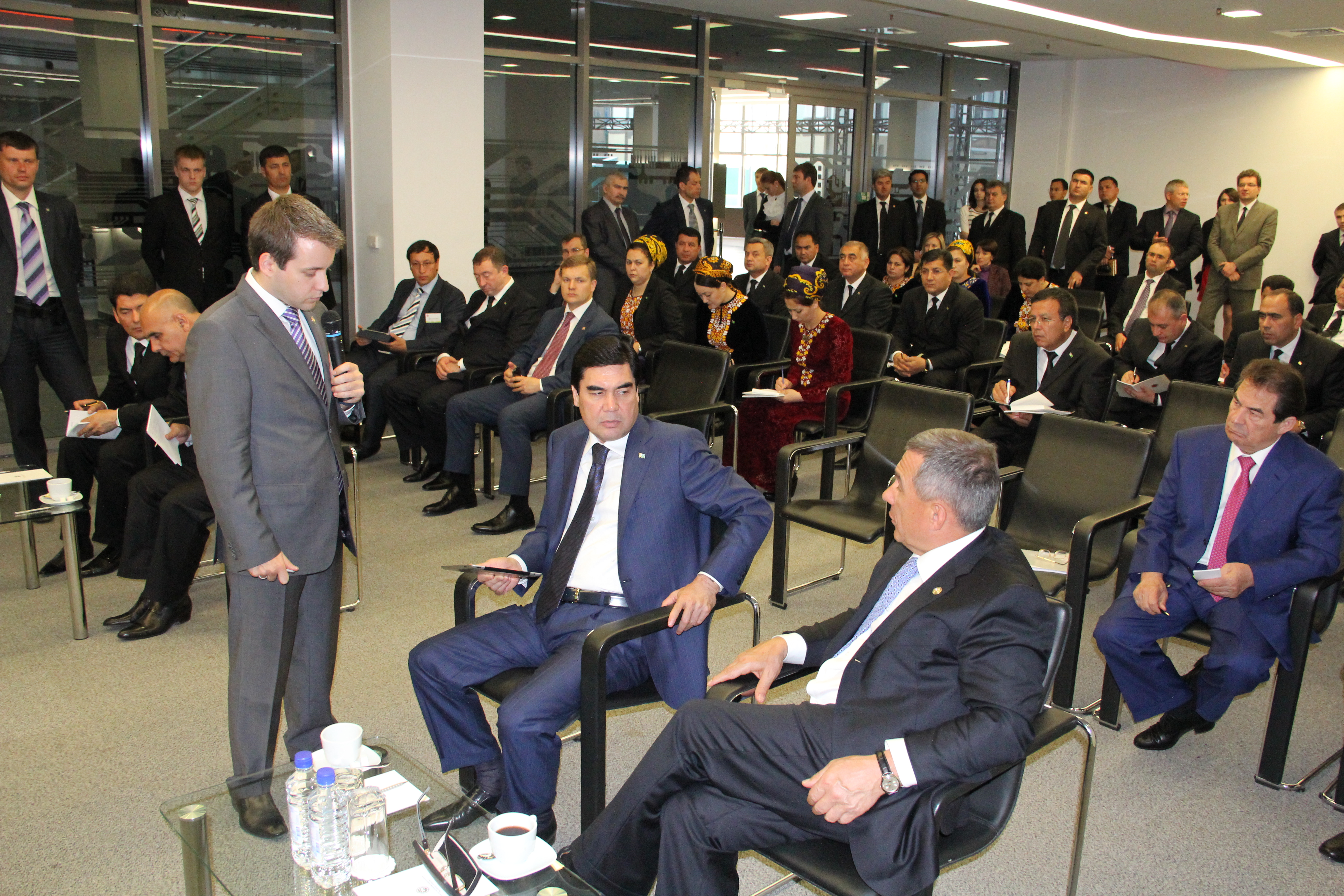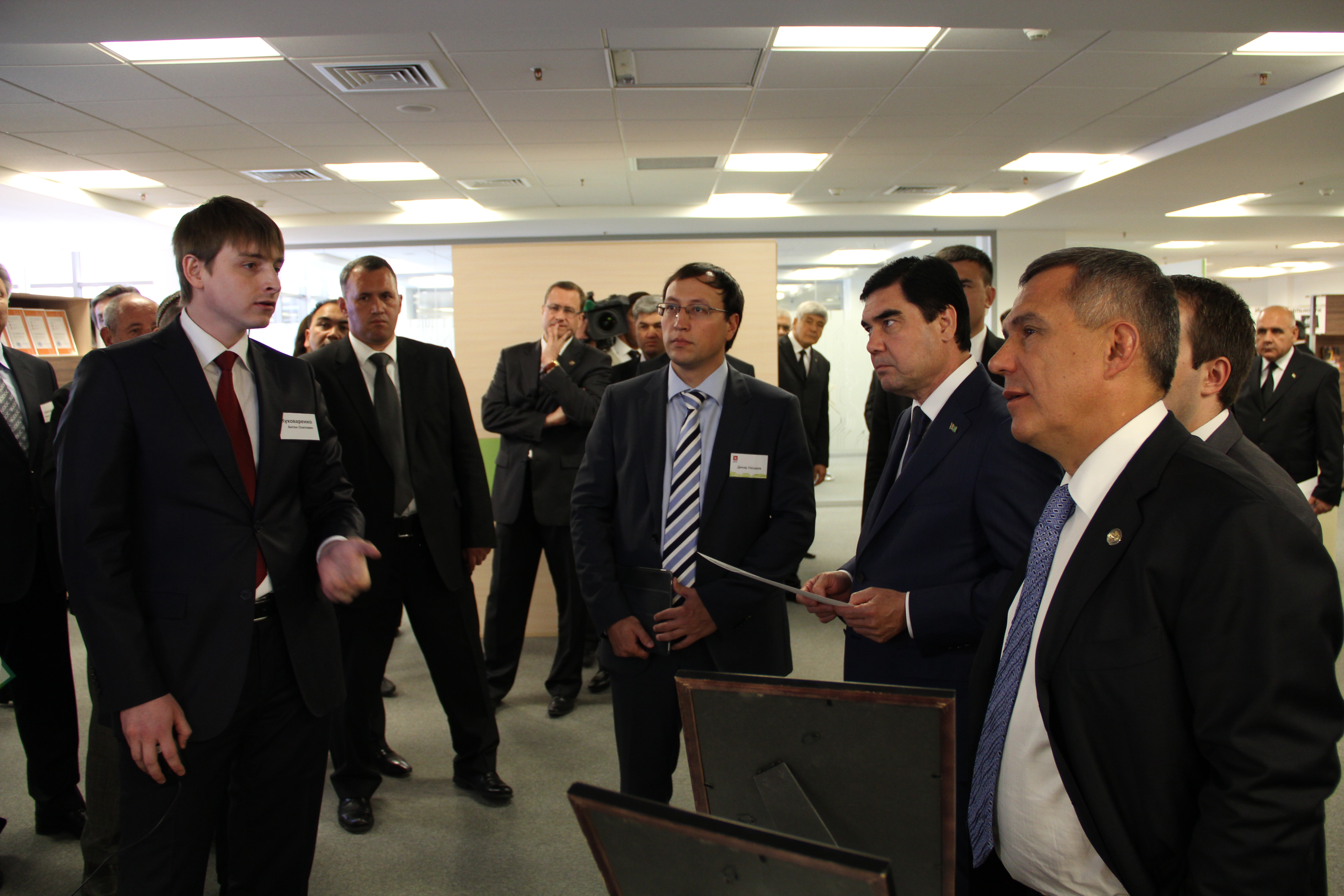 В ИТ-парке членов делегации Туркменистана встречали заместитель Премьер-министра – министр информатизации и связи Республики Татарстан Николай Никифоров и директор ИТ-парка Динар Насыров. Гости ознакомились с инфраструктурой казанского ИТ-парка, его резидентной политикой, проектами разместившихся здесь компаний. Николай Никифоров также рассказал о строительстве второй площадки ИТ-парка в Набережных Челнах и планах по строительству в пригороде Казани инновационного города-спутника - Иннополиса.