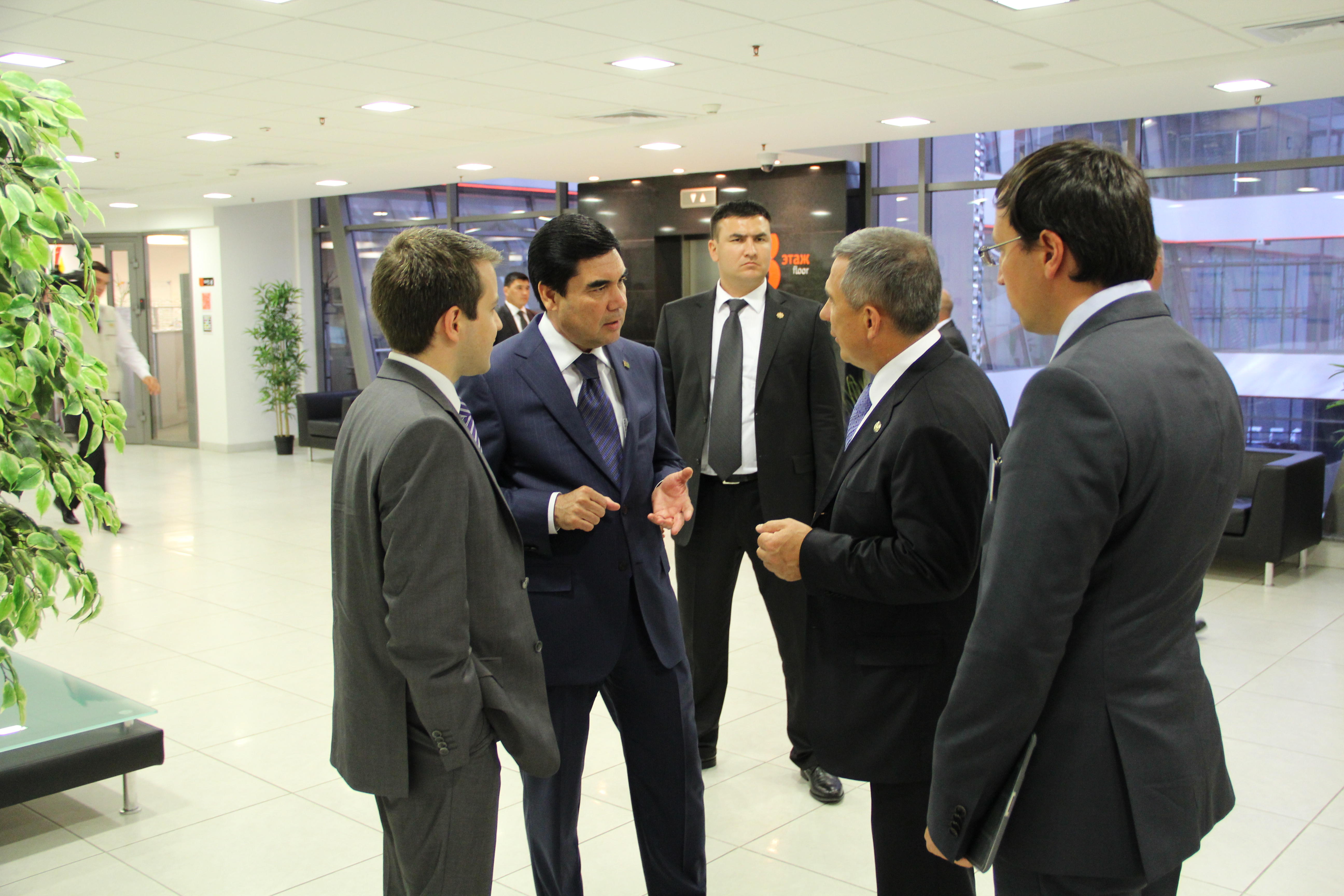 Президент Туркменистана Гурбангулы Бердымухамедов посетил сегодня, в рамках рабочего визита в Республику Татарстан, Технопарк в сфере высоких технологий «ИТ-парк». Президента Туркменистана сопровождал Президент Республики Татарстан Рустам Минниханов.