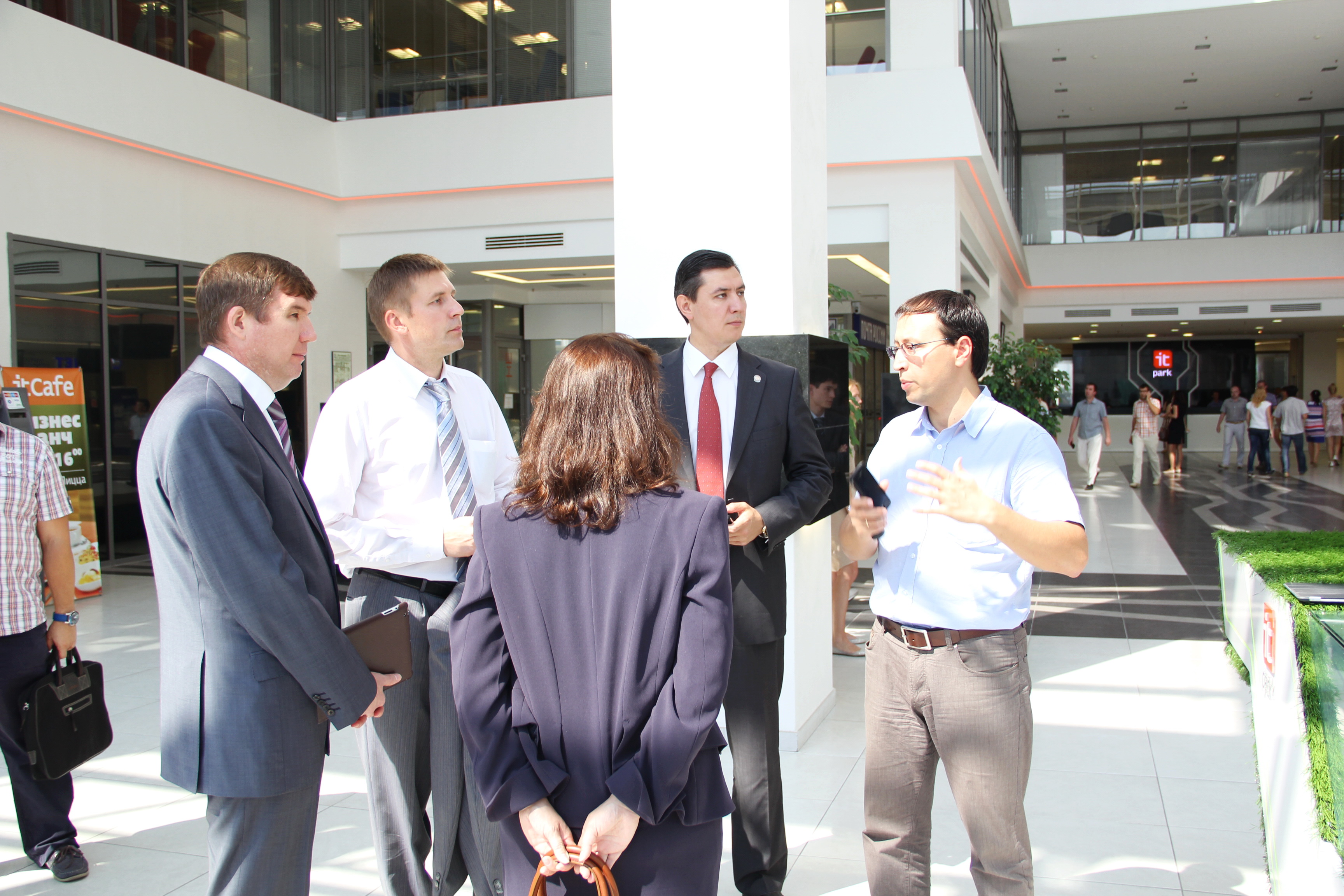 Сегодня ИТ-парк посетила делегация Министерства экономического развития Российской Федерации во главе с исполняющей обязанности директора Департамента особых экономических зон и проектного финансирования Министерства Екатериной Буртоликовой. Ее сопровождал также заместитель директора Департамента особых экономических зон и проектного финансирования Министерства Вадим Третьяков. Гостей встречали Заместитель Премьер-министра – министр информатизации и связи Республики Татарстан Роман Шайхутдинов и директор ИТ-парка Динар Насыров.