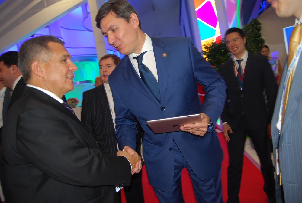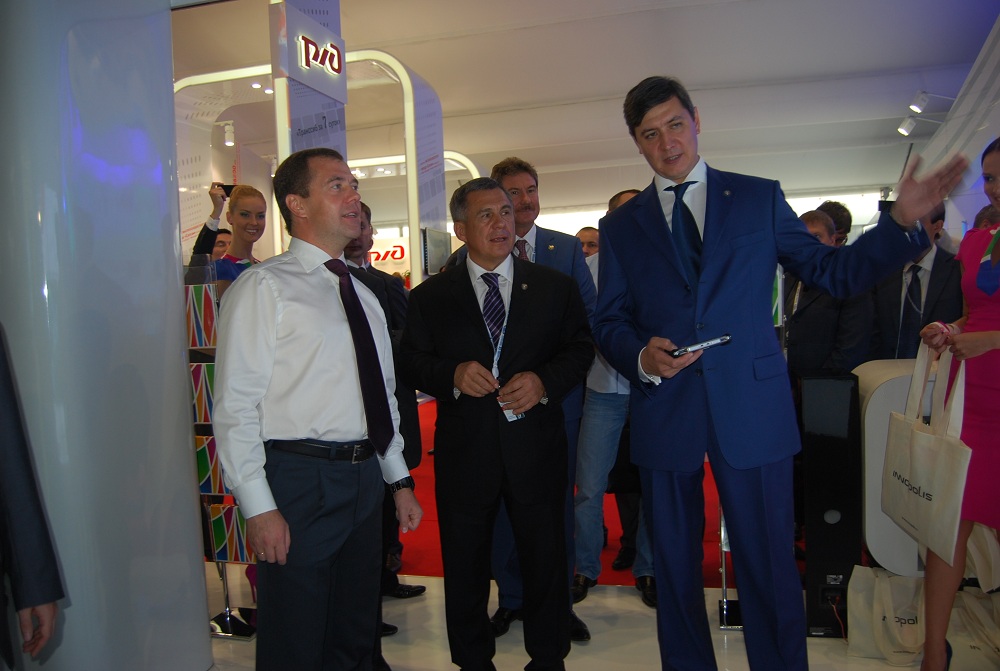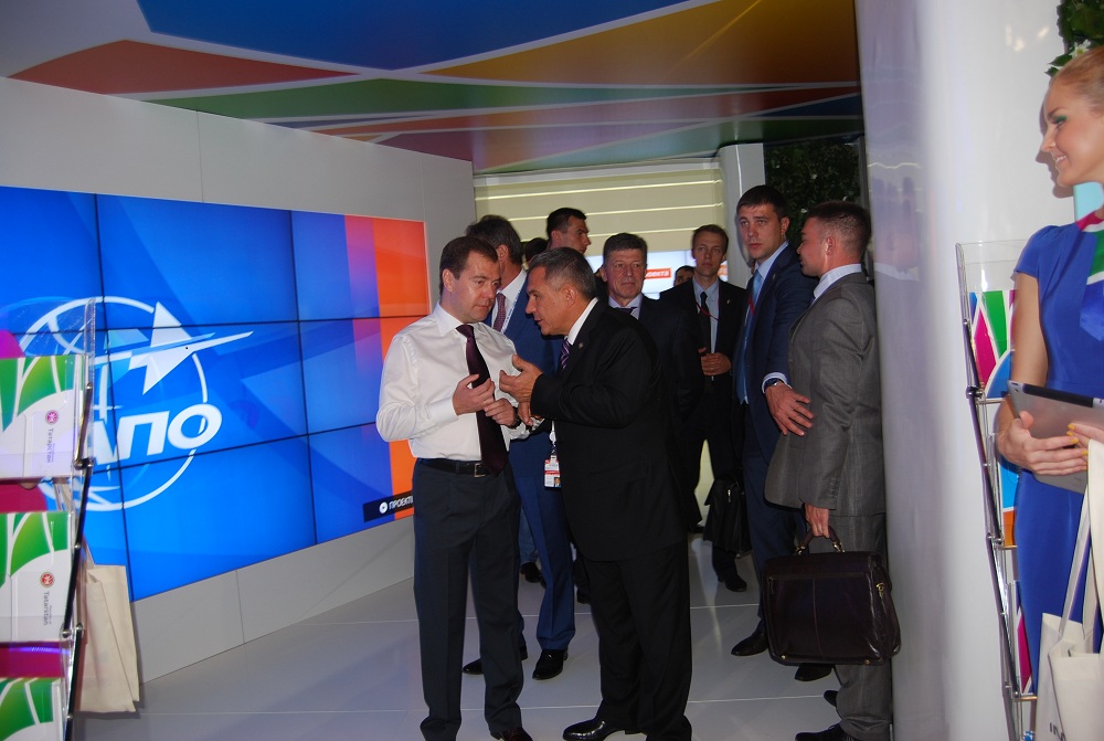 Сегодня Премьер-министр Российской Федерации Дмитрий Медведев посетил стенд Татарстана на международном инвестиционном форуме «Сочи-2012». Главу Правительства РФ встречал на стенде Президент РТ Рустам Минниханов.