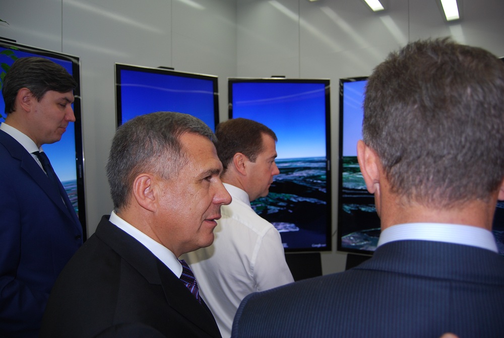 Дмитрий Медведев и Рустам Минниханов воспользовались и «гвоздем» экспозиции Татарстана - уникальным видеостендом Liquid Galaxy. Liguid Galaxy - это эксклюзивная разработка компании Google, которая позволяет каждому при помощи джойстика и 7 ЖК-экранов совершить путешествие по Иннополису в 3D формате и детально рассмотреть его инфраструктуру, созданную по мастер-плану сингапурской RSP Architect.