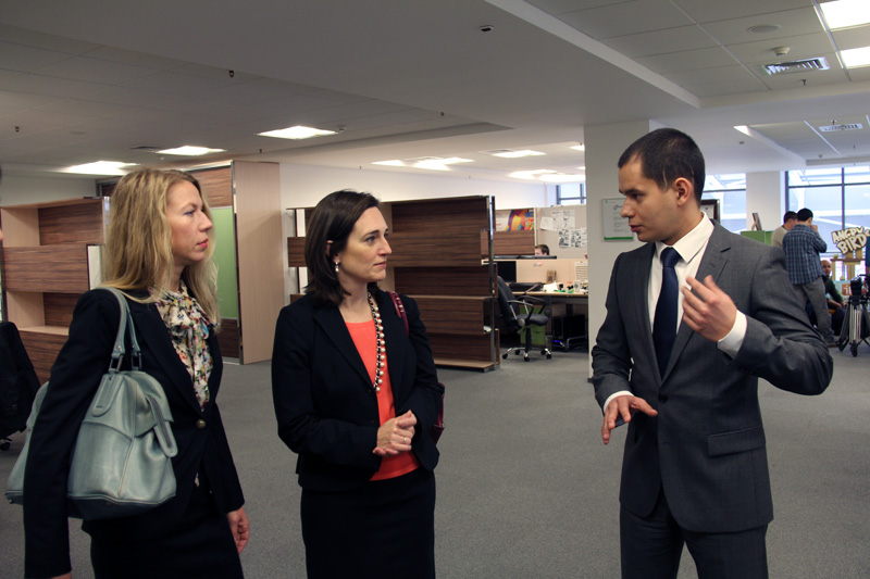 В рамках визита также состоялась встреча с Первым заместителем министра информатизации и связи РТ Юрием Багровым. На ней руководителю отдела торговли и инвестиций продемонстрировали новый IT-проект Татарстана – город Иннополис, строительство которого началось в июне этого года. «Каковы сроки реализации проекта?» - тут же поинтересовалась Ребекка. «Первый объект города – новый технопарк – хотим успеть сдать к годовщине начала строительства», - к удивлению представителей посольства ответил Юрий Багров.