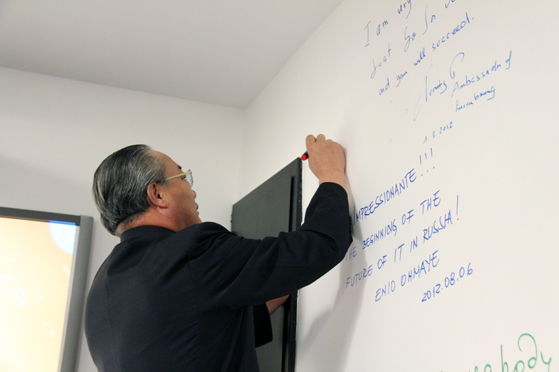Гостей встретили заместитель Премьер-министра – министр информатизации и связи Республики Татарстан Роман Шайхутдинов и директор технопарка в сфере высоких технологий «ИТ-парк» Динар Насыров.