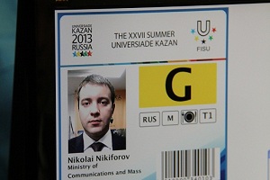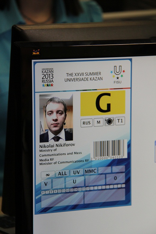 Министру связи продемонстрировали и новый терминал аккредитации на Игры. К Универсиаде в Казани внедряется система аккредитации и продажи билетов по паспорту, которая еще только планируется к внедрению в других регионах России. Николай Никифоров лично протестировал систему и таким образом стал первым официальным лицом, аккредитованным на Универсиаду-2013. Министр также проверил систему допуска на объекты Игр.