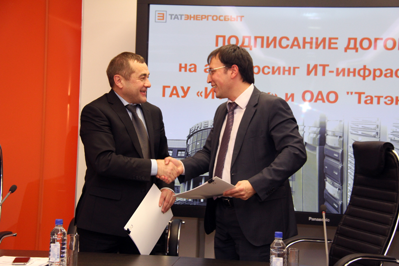 Сегодня в ИТ-парке состоялось подписание соглашения между ГАУ «Технопарк в сфере высоких технологий «ИТ-парк» и ОАО «Татэнергосбыт» на размещение информационных систем в Дата-центре Казанского ИТ-парка.