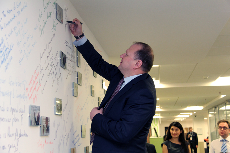 В завершение встречи Николай Цуканов расписался на импровизированной Стене славы Бизнес-инкубатора. «Удачи, добра и процветания», - пожелал он жителям республики.