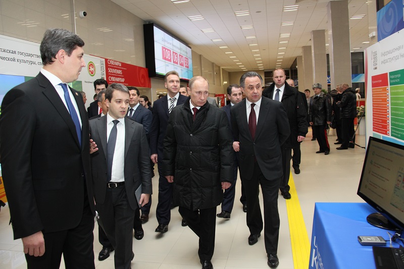 Владимир Путин перед началом заседания Совета при Президенте России по развитию физической культуры и спорта, которое проходит в эти минуты, ознакомился с информацией о информационно-телекоммуникационной инфраструктуре Универсиады 2013.