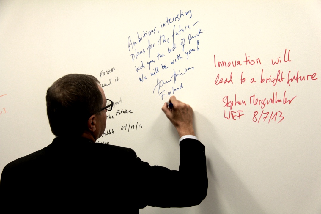 В завершение визита Ханну Химанен оставил пожелание на импровизированной стене славы Бизнес-инкубатора: «Только амбициозных и интересных планов на будущее! Желаю вам удачи! Мы поддержим вас!».