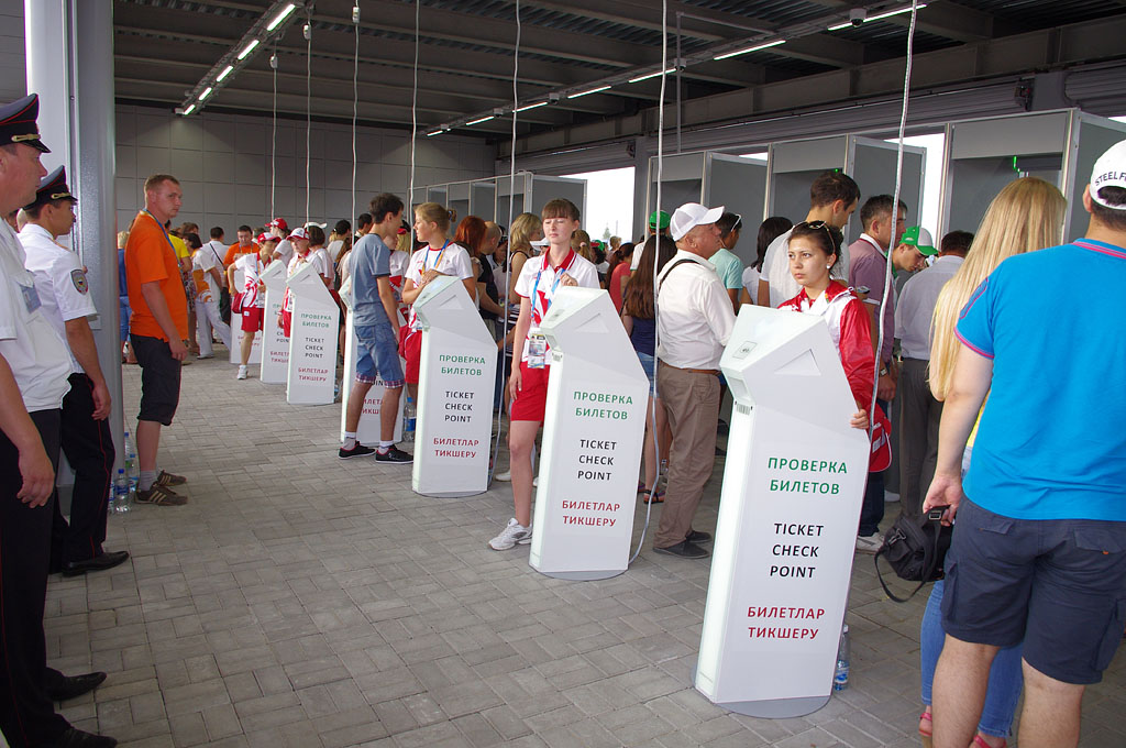 Всего, с 5 по 17 июля около 480 тыс. зрителей прошли на спортивные объекты через терминалы проверки билетов и более 1,3 млн. через терминалы проверки аккредитации.