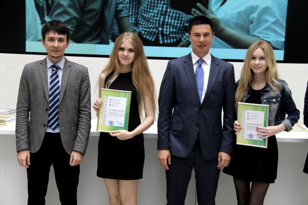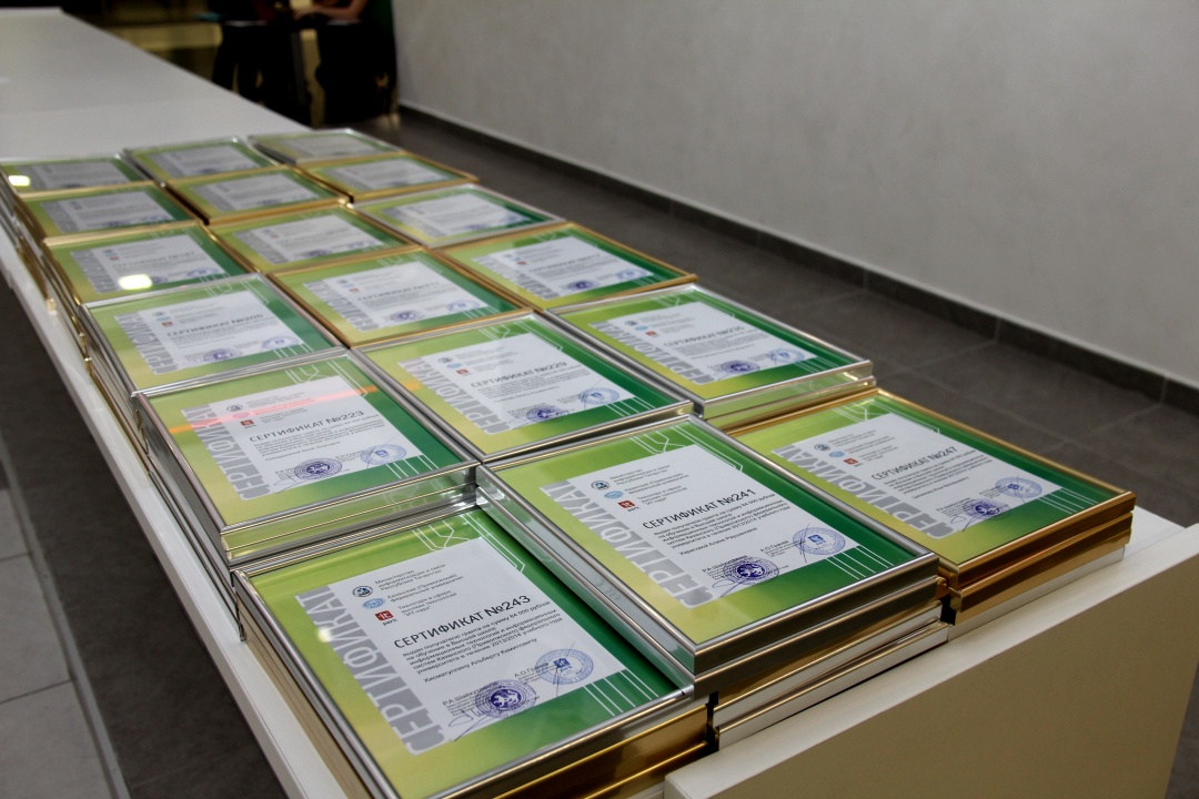 Директор казанского ИТ-парка Антон Грачев с директором Высшей школы ИТИС Айратом Хасьяновым вручили студентам сертификатов на обучение.
