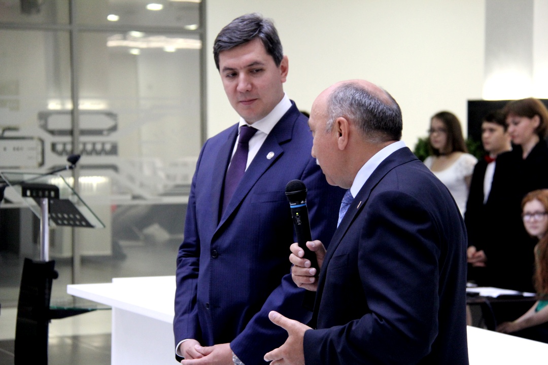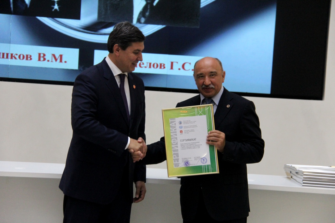 Министр вручил ректору К(П)ФУ Ильшату Гафурову сертификат от Правительства Республики Татарстан на предоставление грантов 104 студентам ИТИС.