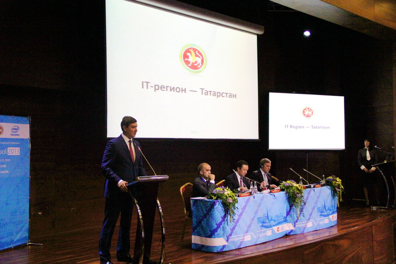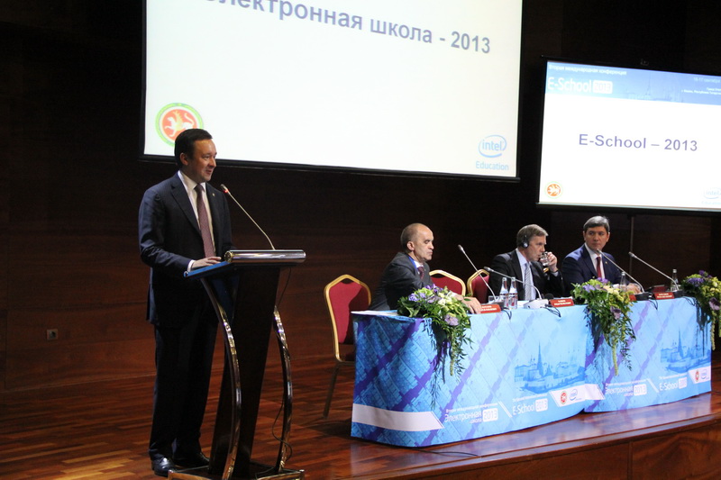 Сегодня в Казани начала работу II международная конференция «Электронная школа-2013». В пленарном заседании приняли участие Премьер-министр РТ Ильдар Халиков, вице-президент корпорации Intel (подразделение Sales and Marketing Group), генеральный менеджер программы World Ahead Джон Е. Дэйвис, заместитель Премьер-министра РТ – министр информатизации и связи Роман Шайхутдинов, и.о. заместителя Премьер-министра РТ – министра образования и науки Энгель Фаттахов.