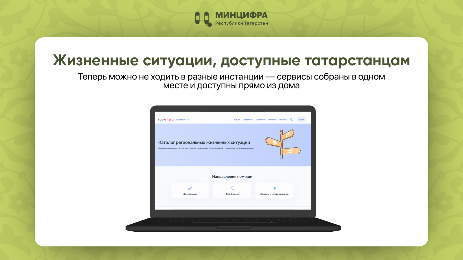 Татарстанцы могут значительно сэкономить время на получение услуги. Теперь можно не ходить в разные инстанции, ведь всё необходимое собрано в одном месте и доступно прямо из дома. Интерфейс «Жизненных ситуаций» интуитивно понятен пользователям любого возраста.