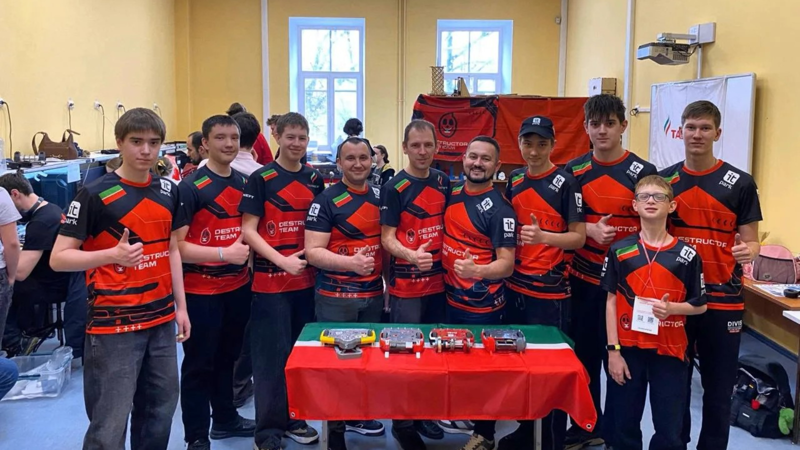 Команда «Destructor – zver» из Республики Татарстан стала бронзовым призером всероссийском турнира по битве мини-роботов «КРАШИЛОВО». Соревнования прошли в Санкт-Петербурге, в них участвовали инженеры от 8 лет с роботами весом не более 1,5 кг.