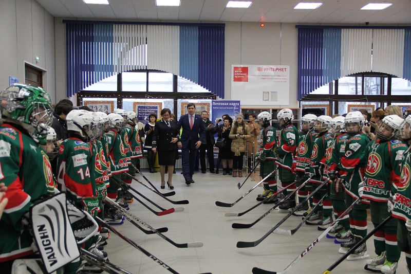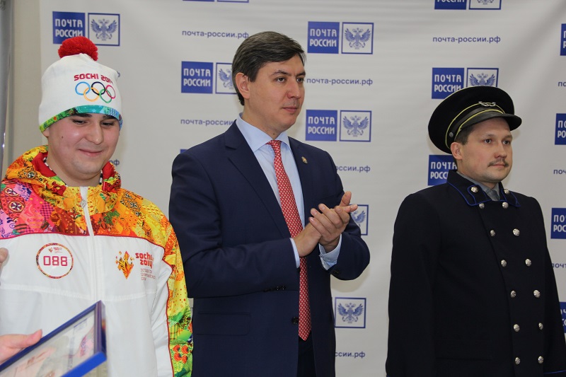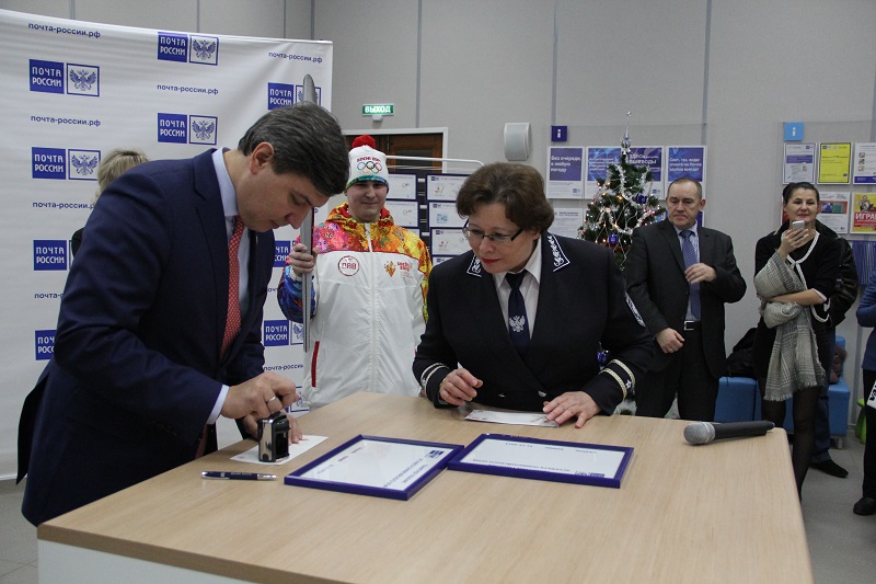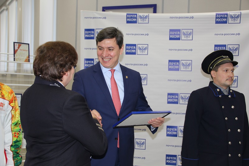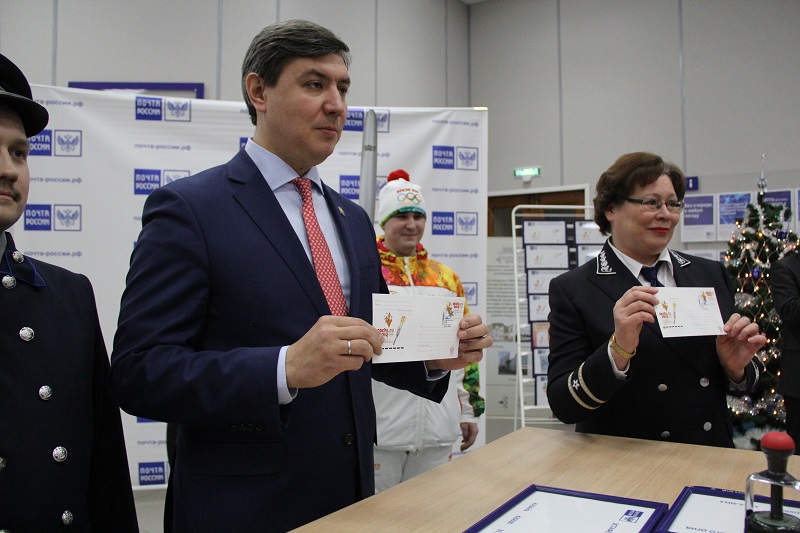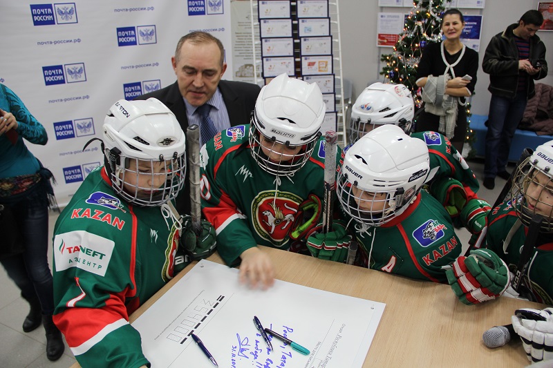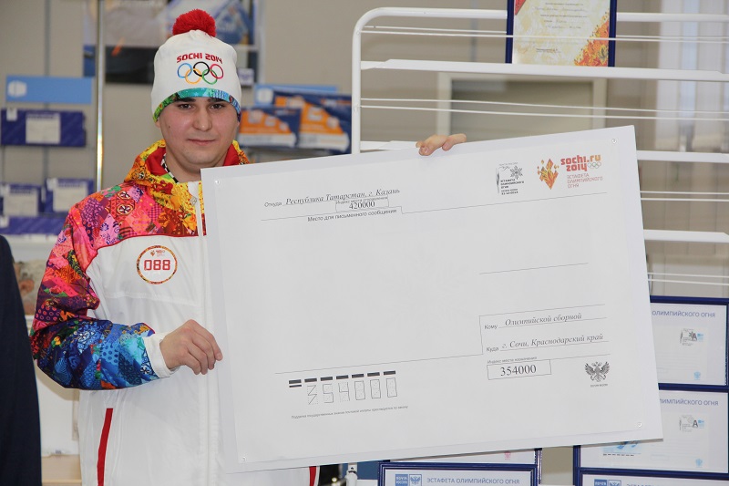 Сегодня в честь прибытия Олимпийского огня в отделении почтовой связи Казань состоялось торжественное гашение почтового блока «XXII Олимпийские зимние игры 2014 года в г. Сочи. Эстафета Олимпийского огня». В церемонии олимпийского гашения приняли участие Министр Заместитель Премьер-министра РТ - министр информатизации и связи РТ Роман Шайхутдинов, Директор УФПС «Татарстан почтасы» - филиала ФГУП "Почта России" Регина Кузнецова, факелоносец – сотрудник УФПС «Татарстан почтасы» Алексей Костин, детская юношеская хоккейная команда «Ак Барс - юноши 2002 года», филателисты, учащиеся Казанского Электротехникума связи.