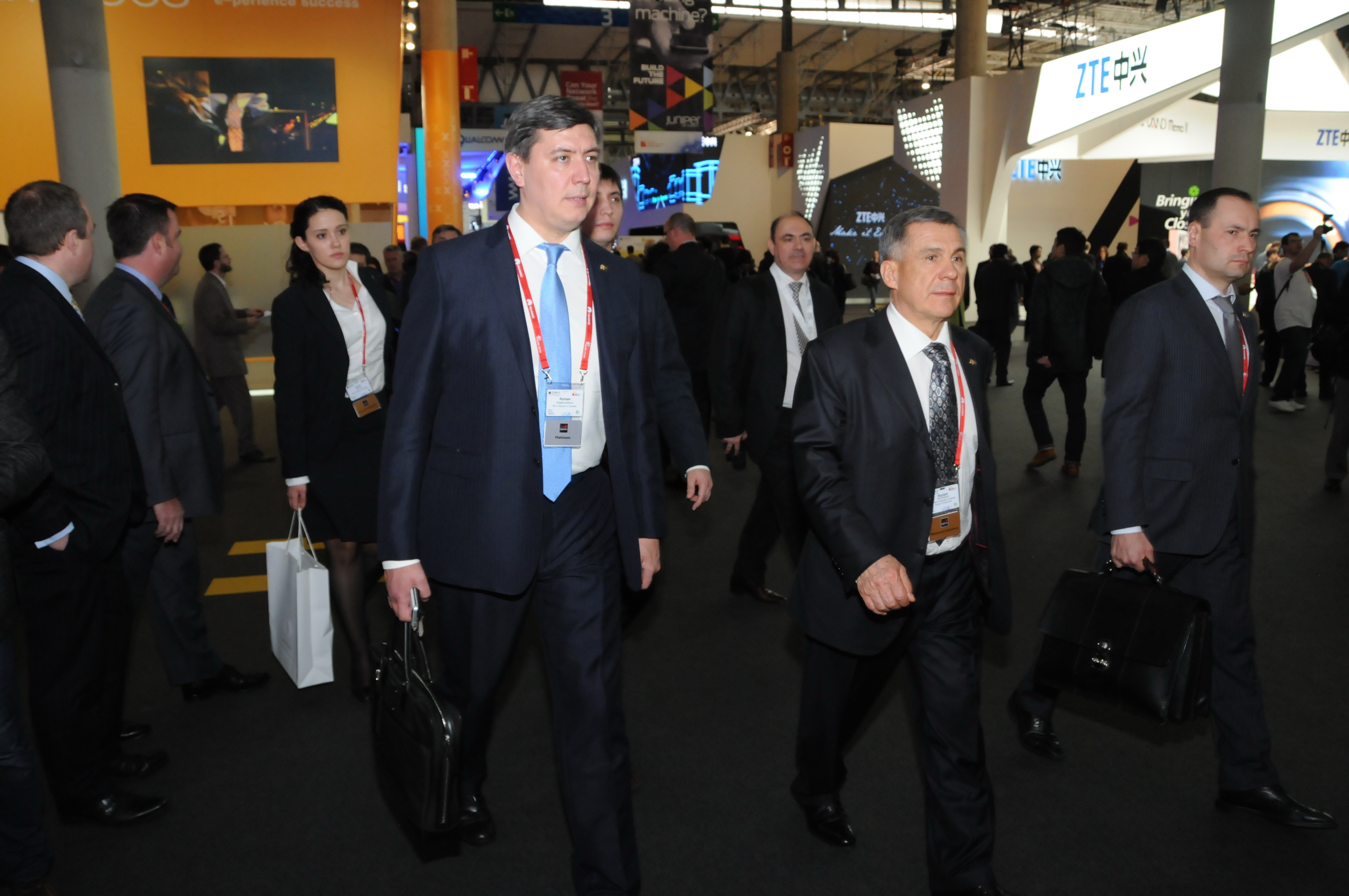 Крупнейшую в Европе ежегодную выставку мобильной индустрии посетил сегодня в Барселоне Президент Татарстана Рустам Минниханов. В состав татарстанской делегации также вошли вице-премьер – министр информатизации и связи РТ Роман Шайхутдинов, министр экологии и природных ресурсов республики Артем Сидоров, министр транспорта и дорожного хозяйства Татарстана Ленар Сафин, руководитель Агентства инвестиционного развития РТ Линар Якупов.