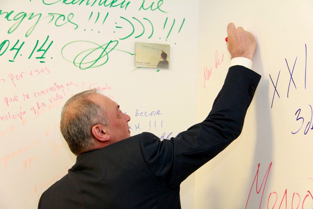 На третьем этаже казанского ИТ-парка, в Бизнес-инкубаторе, гостя ждал целый ряд презентаций, в том числе стартапов. Одним из таких проектов стал стартап, призванный оптимизировать систему железнодорожных перевозок путем подбора оптимального маршрута. Проект долежн решить проблемы простоя вагонов, оптимизировать время на доставку грузов и облегчить жизнь как перевозчикам, так и логистическим компаниям. Проект заинтересовал Магомедсалама Магомедова, и в ходе презентации он задавал много уточняющих вопросов – от принципов работы будущей системы до уточнения законодательных аспектов ее использования. Гостю рассказали и о системе «Автодория», одном из наиболее успешных выпускников Бизнес-инкубатора.