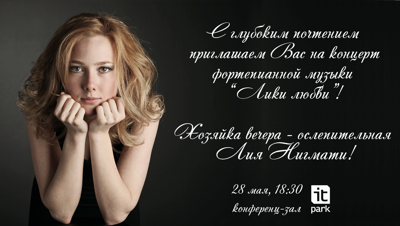В программе вечера прозвучат произведения русских, европейских и советских композиторов в исполнении победительницы программы "Молодые таланты России", лауреата международных конкурсов и фестивалей в Париже (Франция), Вене (Австрия), Праге (Чехия) – Лии Нигмати. Выступления пианистки проходили с успехом в США, Китае, Италии, Японии и других странах.