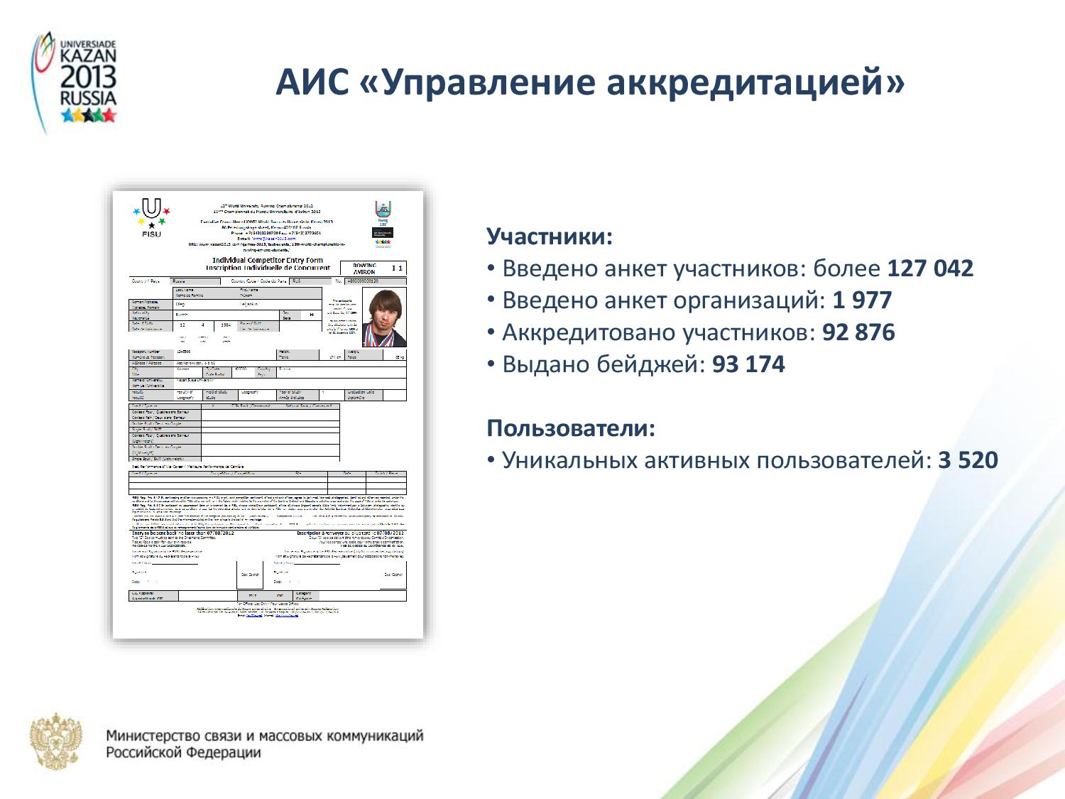 Узган атнада Казанда XXVII дөньякүләм җәйге Универсиада тәмамланды. Аны үткәрер өчен 92 мең катнашучы һәм 2 мең тирәсе оешма аккредацияләнгән булган. Аккредитация системасы базасында 16 меңнән артык Россиягә визасыз керүгә таныклык чыгарылган.
