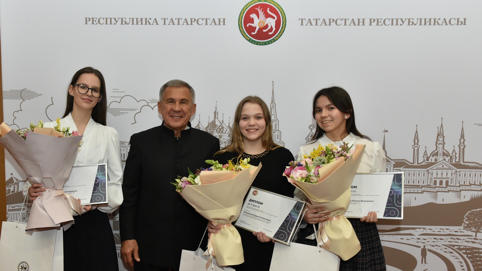Татарстан Республикасы Президенты Рөстәм Миңнеханов «Мин-мәктәп укучысы» сервисы мобиль кушымтасында юл хәрәкәте иминлеге буенча республика конкурсында җиңүчеләрне бүләкләде.