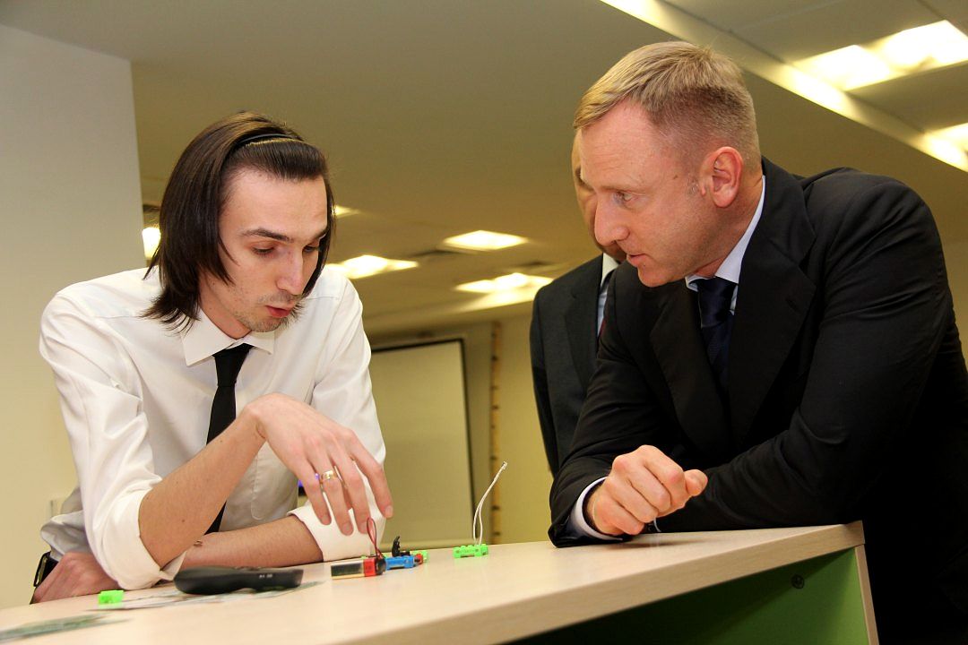 Дмитрий Ливановка бизнес-инкубаторның яңа проектларының берсен – “Микрочасти” стартапын күрсәттеләр. Бу - балалар өчен “Марабака” порталы буенча таныш Андрей Матвеев проекты.